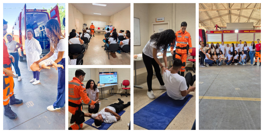 Com carga horária de cinco horas, a atividade teve como foco aprimorar conhecimentos indispensáveis para o atendimento a ocorrências de urgência e emergência. Ao longo do treinamento, foram trabalhados conceitos básicos de primeiros socorros, noções do atendimento pré-hospitalar e a atuação correta diante de situações clínicas, como desmaios e crises convulsivas.