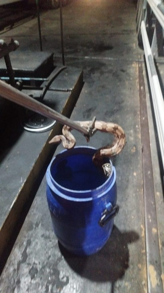Já na manhã desta quarta-feira (15), por volta das 11h00, outra serpente foi encontrada em uma área residencial. Antes da chegada da equipe, a moradora tentou conter o animal com um rodo — atitude arriscada que poderia ter terminado em acidente. Apesar de não ser peçonhenta, o risco era real. Os militares fizeram a captura e orientaram a solicitante.