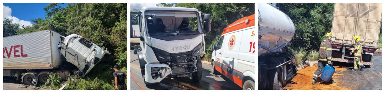 Durante o acidente, o perigo aumentou ainda mais: uma das carretas atingidas apresentou princípio de incêndio, gerando pânico entre quem passava pela rodovia. Populares agiram rápido e conseguiram conter as chamas até a chegada do Corpo de Bombeiros Militar, que realizou o rescaldo e eliminou completamente o risco de reignição.